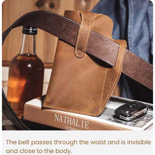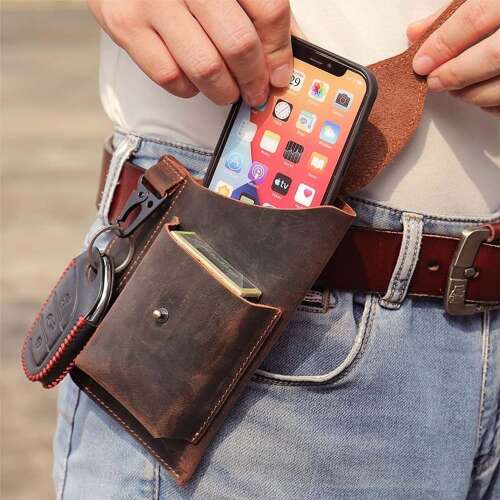 Ez a férfi mobiltelefon bõrtok praktikus és stílusos megoldás a mindennapi szükségletek tárolására és hordozására.