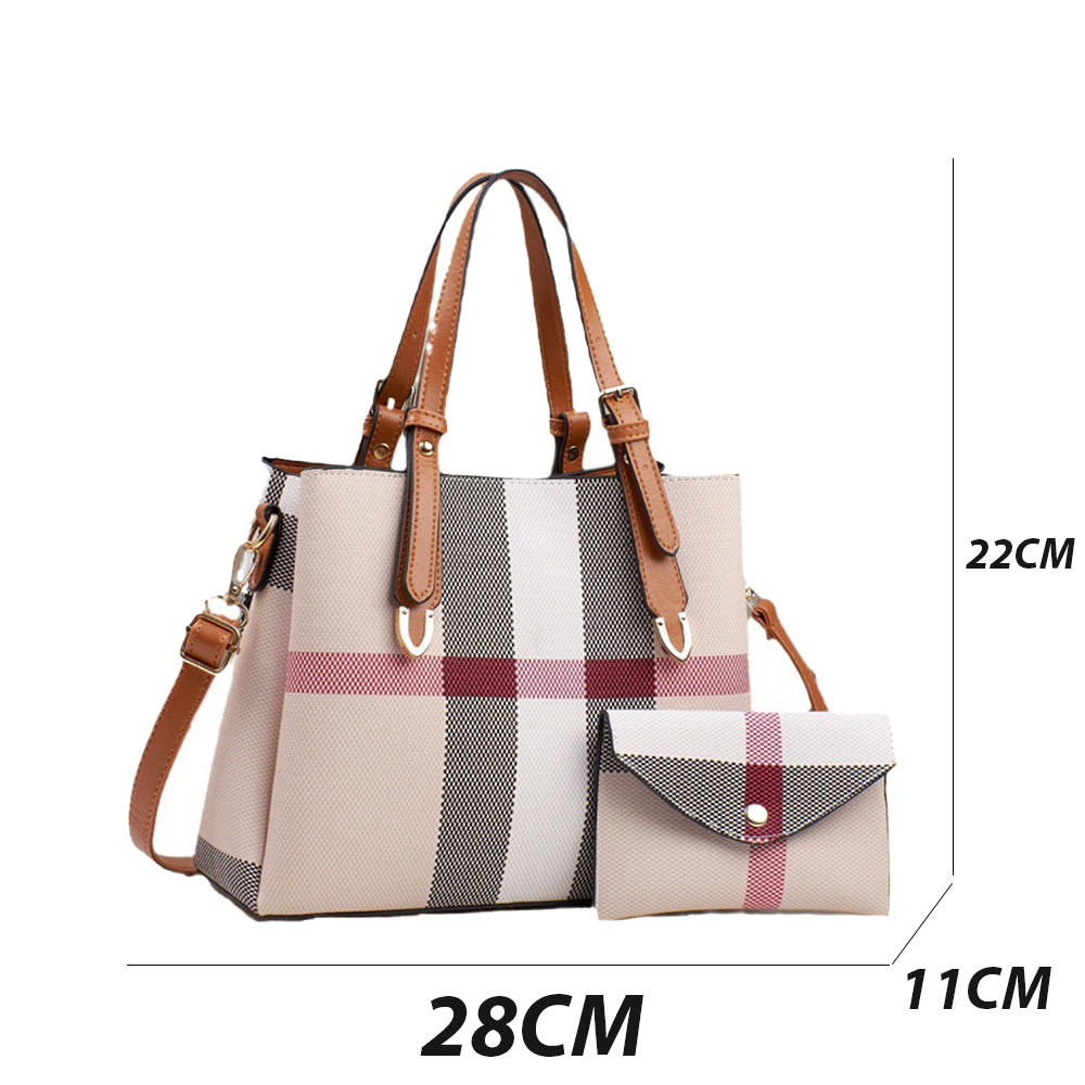 Dollcini Női Táska és Pénztárca Szett – Stílusos, Kockás Műbőr Kézitáska