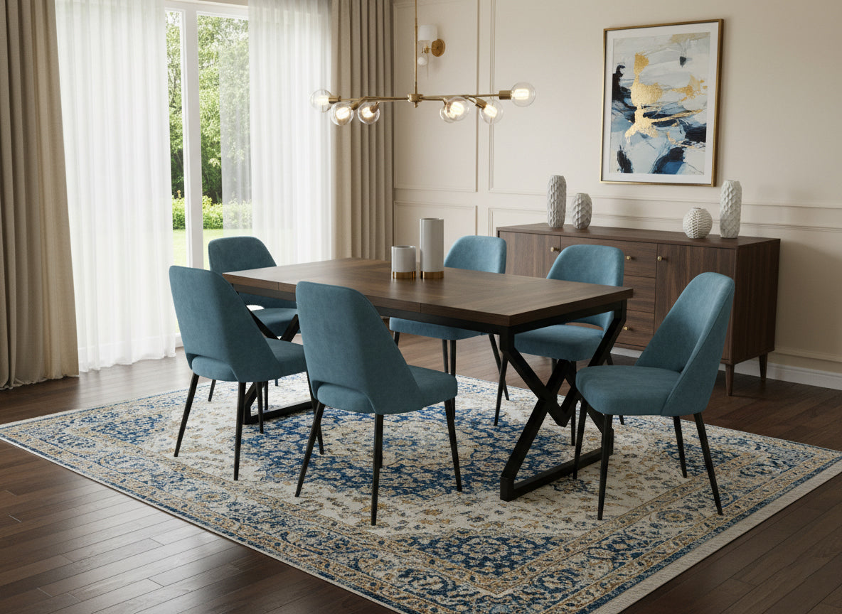 - Egyedi Lábkialakítás: A Z-alakú, szögletes lábak nemcsak stabilak, de bőséges lábteret is hagynak, miközben izgalmas vizuális elemet adnak az asztalnak.
