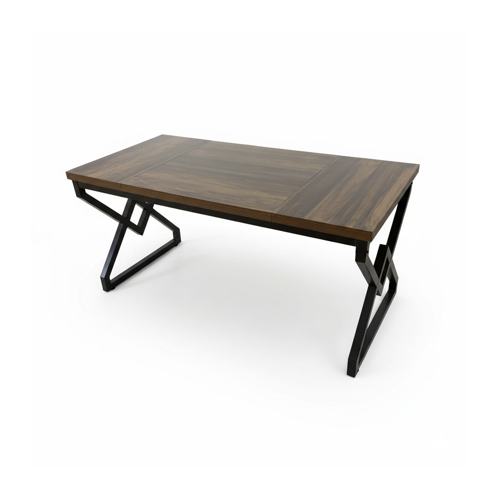 Vigyen merész, indusztriális stílust otthonába a Dollcini Otthon legújabb étkezőasztalával! Ez a darab a nyers erőt és a modern dizájnt ötvözi: a gazdag, sötét fa hatású asztallap melegséget sugároz, míg a robusztus, geometrikus formájú fekete fém lábak egyértelműen a loft lakások hangulatát idézik.