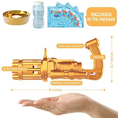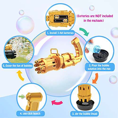 A Gatling típusú buborékfújó szerkezetét 8 buboréklyukkal tervezték, amelyek segítségével percenként több száz színes buborékot lehet kifújni. Ezáltal vagányabb és érdekesebb megjelenést kölcsönöz. |