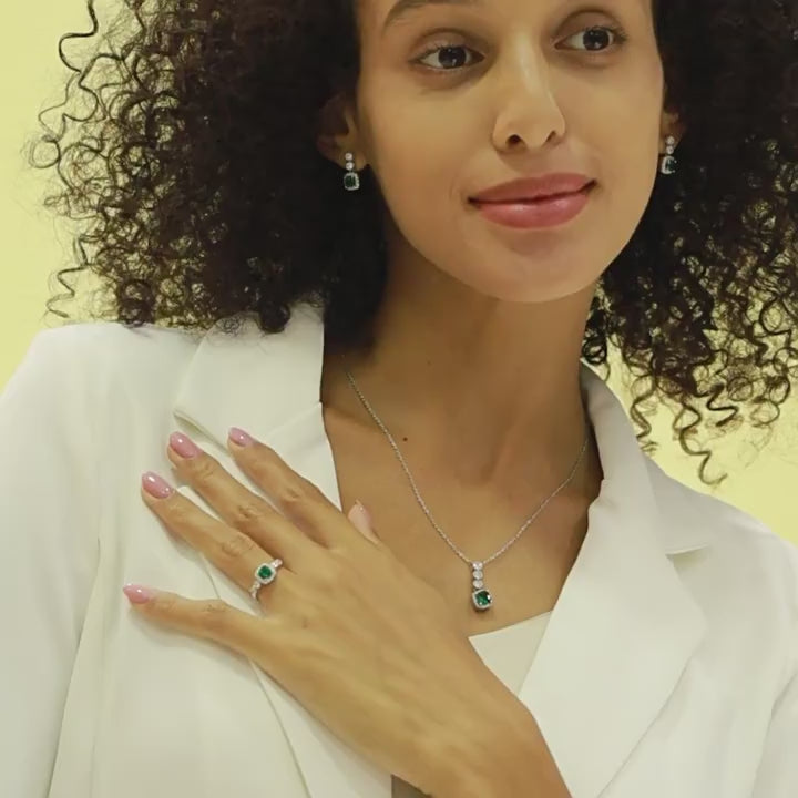 Klasszikus zöld fő kő, ragyogó körfoglalás és időtálló dizájn – elegáns választás önálló darabként vagy teljes szettként.