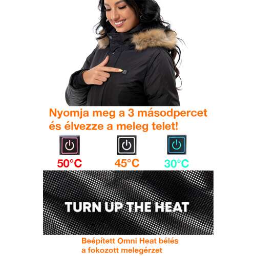 - Fűtés: 9 szénszálas fűtőelem 3 fűtési fokozattal (magas, közepes, alacsony), melegíti a nyakat, hátat, hasat és derekat. Gyors felmelegedés 7,4 V akkumulátorral, akár 8-10 órányi meleg. USB port mobil eszközök töltéséhez.