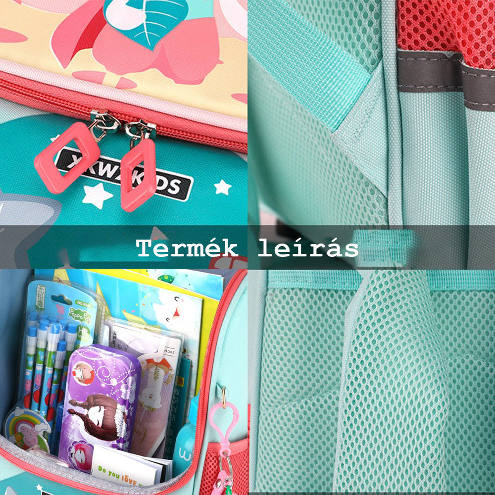 Ez a könnyű hátizsák ideális kisgyermekeknek mindennapi használatra .A kiváló minőségű cipzárok biztonságban tartják a napi felszerelést. A hátoldalon a 2 állítható S-alakú vállpánt szépen párnázott,légáteresztős vállpántók, nagyon kényelmes és kényelmesen hordozható. A tetején van egy fogantyú a tetején, és egy pánt, amellyel felakaszthatjuk az iskolatáskát az osztályteremben. Akár esőbe is használható mert a termék vízálló.