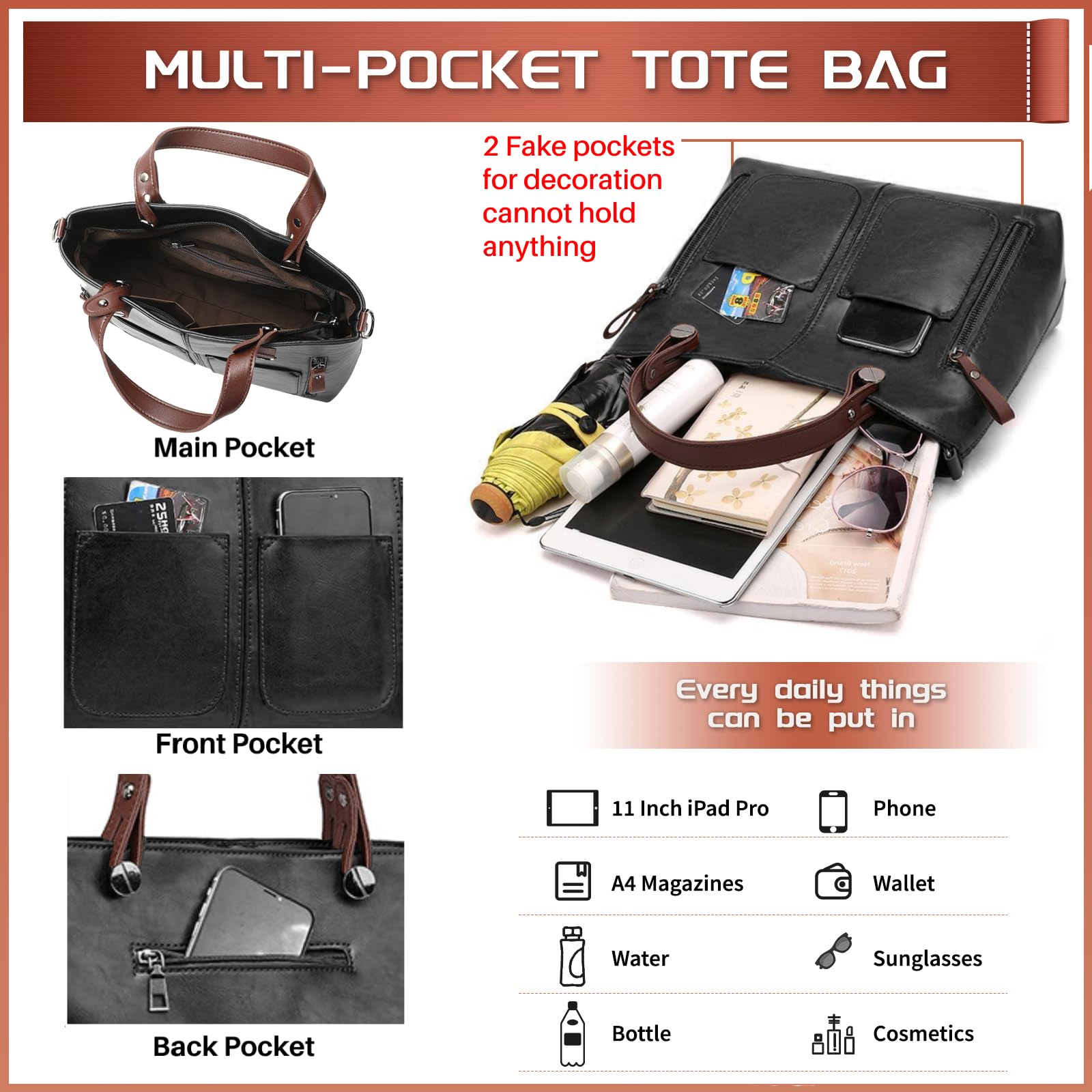 Kívül elegáns, könnyen tisztítható PU bőr, belül puha szövetbélés védi az értékeidet. A szegecsekkel megerősített fogantyú és a prémium fém cipzár gondoskodik a hosszú élettartamról.