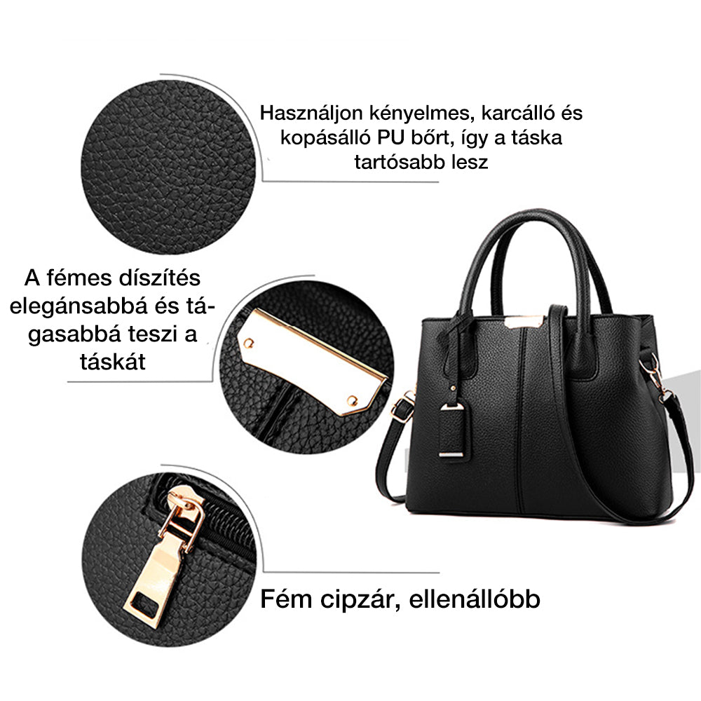 - Levehető vállpánttal, így kézitáskaként vagy futártáskaként is hordható.