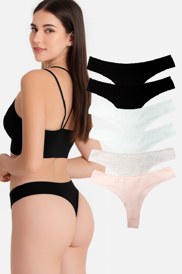 Dollcini Tanga Női Bugyi - 95% Pamut, Többszínű, 6 db-os Csomag