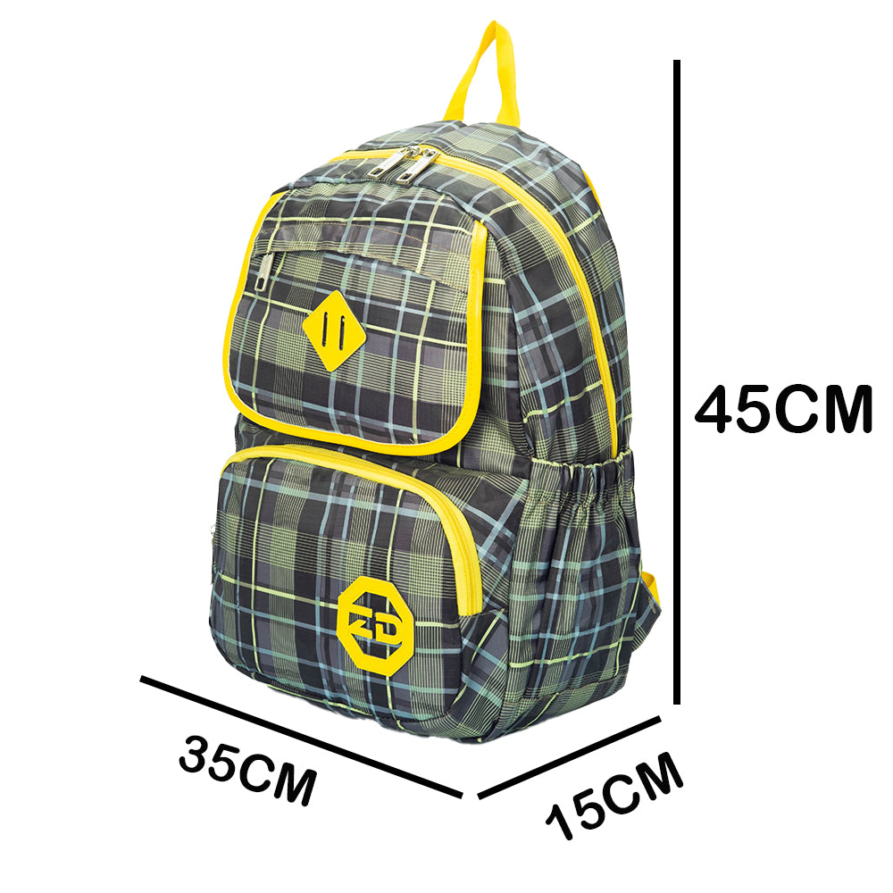 Fedezd fel ezt a retró hangulatú, zöld-sárga kockás hátizsákot, amely tökéletes társ a mindennapokban! Legyen szó iskoláról, egyetemről vagy egy városi kalandról, ez a táska nemcsak rendkívül praktikus, de garantáltan stílusos megjelenést is biztosít. Az egyedi, kockás dizájn és a funkcionális kialakítás tökéletes kombinációja.