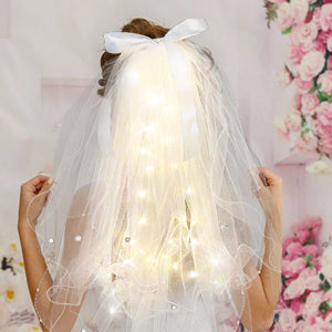 -LED-es Tündér Fejpánt + Esküvői Fátyol Szett – Álomszerű Kiegészítő Ünnepekre