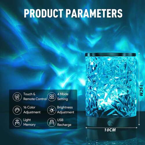 Dollcini Otthon RGB Kristály Lámpa – 16 Színű, USB-s, Távirányítós