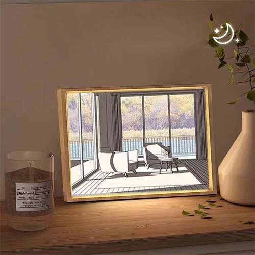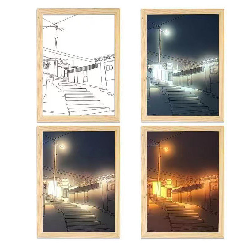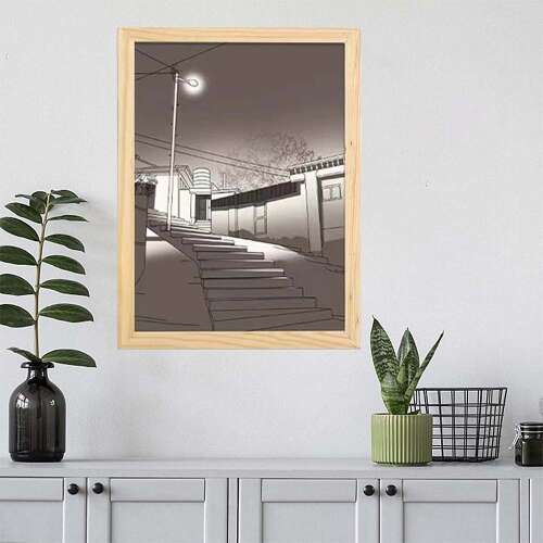 Környezetbarát tömörfa keretes fényfestmény: Fenntartható anyagokból készült, stílusos dizájnnal.