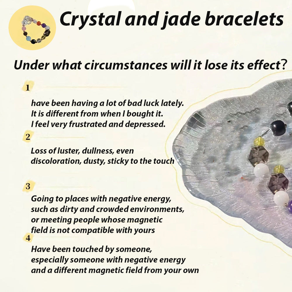 Ha a kristályok viselés közben elhalványulnak, eltörnek vagy elsötétülnek, az annak a jele, hogy az áldás energiája kimerült, mert a kristály elnyelte viselője helyett az őt ért negatív hatásokat. Kérjük, ekkor cserélje le a karkötőt egy új, megáldott példányra.